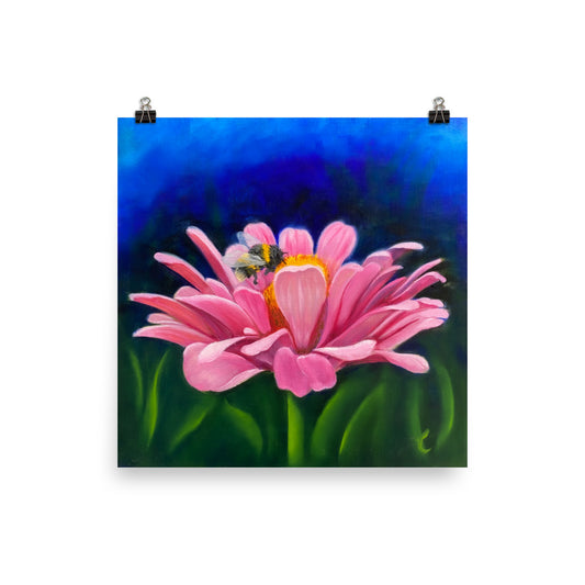 Pink Zinnia with Bumblebee