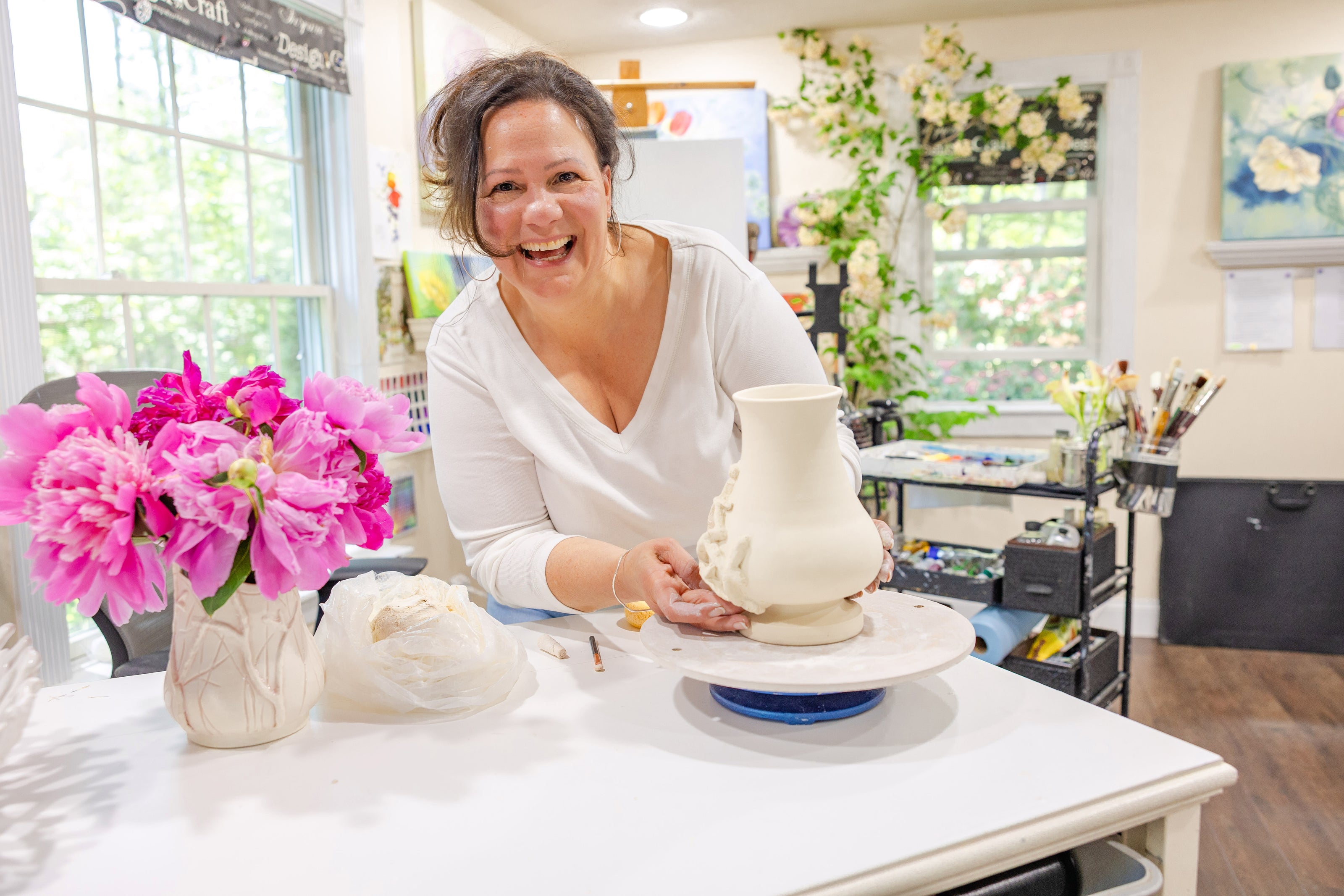 After a 25-year career in technology, I founded Carla Thomson Art to pursue a more tactile and meaningful path. My oil paintings explore the ethereal stillness of florals and atmospheric landscapes, while my ceramics are shaped by impressions of flower buds, twisting vines, and stone—earth-formed textures that make each piece distinct and quietly powerful.